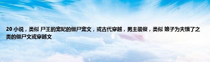 大家好,小常来为大家解答以上问题。20 小说,类似,尸王的宠妃的僵尸宠文,或古代穿越,男主装傻,类似,娘子为夫饿了之类的僵尸文或穿越文很多人还不知道,现在让我们一起来看看吧!