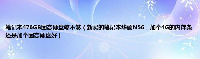 大家好,小常来为大家解答以上问题。笔记本476GB固态硬盘够不够,新买的笔记本华硕N56,加个4G的内存条还是加个固态硬盘好很多人还不知道,现在让我们一起来看看吧!