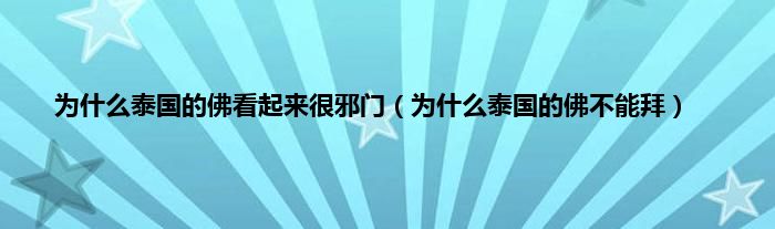 大家好,小常来为大家解答以上问题。为什么泰国的佛看起来很邪门,为什么泰国的佛不能拜很多人还不知道,现在让我们一起来看看吧!
