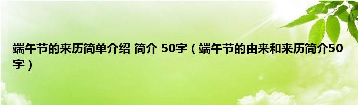 大家好,小常来为大家解答以上问题。端午节的来历简单介绍 简介 50字,端午节的由来和来历简介50字很多人还不知道,现在让我们一起来看看吧!