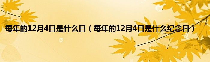 大家好,小常来为大家解答以上问题。每年的12月4日是什么日,每年的12月4日是什么纪念日很多人还不知道,现在让我们一起来看看吧!