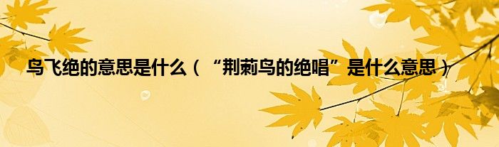大家好,小常来为大家解答以上问题。鸟飞绝的意思是什么,“荆莿鸟的绝唱”是什么意思很多人还不知道,现在让我们一起来看看吧!