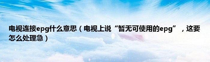 大家好,小常来为大家解答以上问题。电视连接epg什么意思,电视上说“暂无可使用的epg”,这要怎么处理急很多人还不知道,现在让我们一起来看看吧!