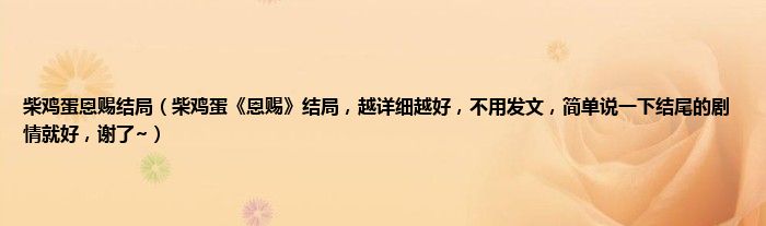 大家好,小常来为大家解答以上问题。柴鸡蛋恩赐结局,柴鸡蛋《恩赐》结局,越详细越好,不用发文,简单说一下结尾的剧情就好,谢了~很多人还不知道,现在让我们一起来看看吧!