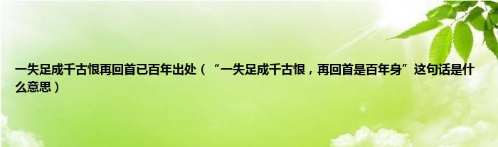 “一失足成千古恨,再回首是百年身。”字面意思为一个人只要做错一件最重要的关键,就会造成不可弥补的遗憾,即使重新来过,许多时机也无法追回。