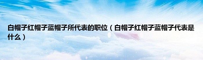 大家好,小常来为大家解答以上问题。白帽子红帽子蓝帽子所代表的职位,白帽子红帽子蓝帽子代表是什么很多人还不知道,现在让我们一起来看看吧!