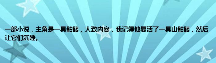 大家好,小常来为大家解答以上问题。一部小说,主角是一具骷髅,大致内容,我记得他复活了一具山骷髅,然后让它们沉睡。很多人还不知道,现在让我们一起来看看吧!