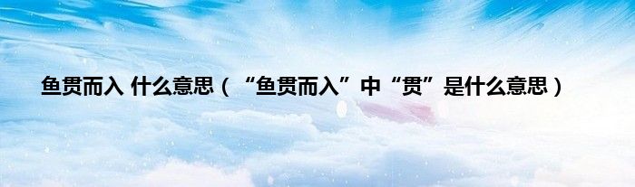 “鱼贯而入”中“贯”意思是:穿,通。成语解释像游鱼一样一个跟着一个地接连着走。形容一个接一个地依次序进入。(贯:古代穿钱的绳索(把方孔钱穿在绳子上,每一千个为一贯;鱼贯:就是把鱼成串地穿在一起。所以不可能是一拥而入)。出处将士皆攀木缘崖,鱼贯而进。《三国志·魏志·邓艾传》成语故事东晋集团苟安江南,南昌守将庾翼率军向北挺进,准备收复北方,统一中国,驻守襄阳一带。他手下官吏范汪向晋成帝上书说当前任务是练兵,积蓄粮草,待时机成熟再兴兵北伐。他说:“沔汉干涸,皆当鱼贯而行,推排而进”,反对北伐。扩展资料:造句1.人群鱼贯而入进入会场。2.运动员们鱼贯而入,进入场地准备比赛。3.上课铃声响起,同学们鱼贯而入教室。4.电影院的门刚一打开,人们就鱼贯而入。5.运动员们鱼贯而入,进入场地准备比赛。
