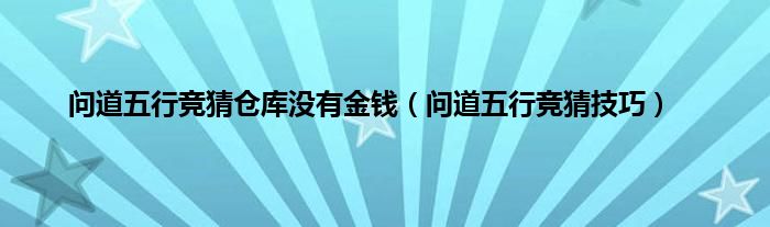 大家好,小常来为大家解答以上问题。问道五行竞猜仓库没有金钱,问道五行竞猜技巧很多人还不知道,现在让我们一起来看看吧!