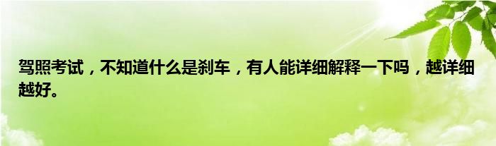 大家好,小常来为大家解答以上问题。驾照考试,不知道什么是刹车,有人能详细解释一下吗,越详细越好。很多人还不知道,现在让我们一起来看看吧!