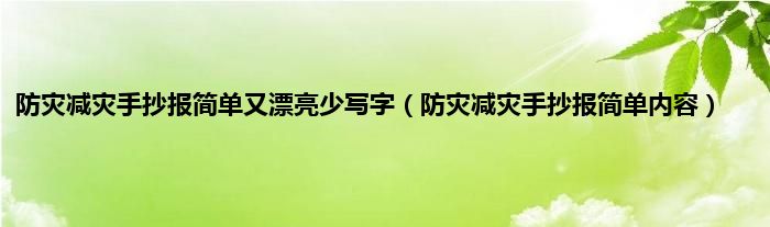 大家好,小常来为大家解答以上问题。防灾减灾手抄报简单又漂亮少写字,防灾减灾手抄报简单内容很多人还不知道,现在让我们一起来看看吧!