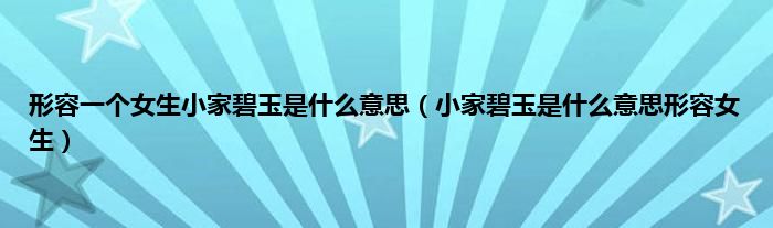 大家好,小常来为大家解答以上问题。形容一个女生小家碧玉是什么意思,小家碧玉是什么意思形容女生很多人还不知道,现在让我们一起来看看吧!