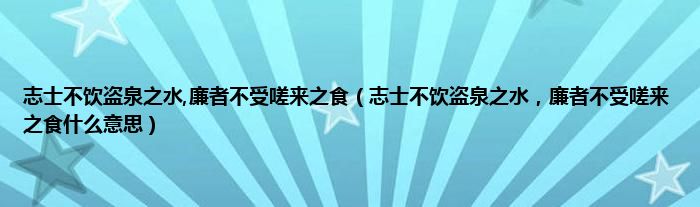 大家好,小常来为大家解答以上问题。志士不饮盗泉之水,廉者不受嗟来之食,志士不饮盗泉之水,廉者不受嗟来之食什么意思很多人还不知道,现在让我们一起来看看吧!