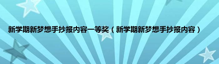 大家好,小常来为大家解答以上问题。新学期新梦想手抄报内容一等奖,新学期新梦想手抄报内容很多人还不知道,现在让我们一起来看看吧!