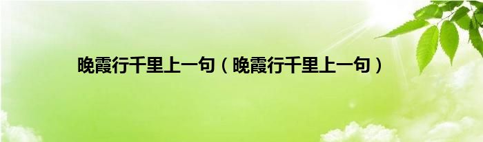 大家好,小常来为大家解答以上问题。晚霞行千里上一句,晚霞行千里上一句很多人还不知道,现在让我们一起来看看吧!