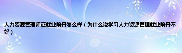 大家好,小常来为大家解答以上问题。人力资源管理师证就业前景怎么样,为什么说学习人力资源管理就业前景不好很多人还不知道,现在让我们一起来看看吧!