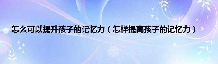 大家好,小科来为大家解答以上问题。怎么可以提升孩子的记忆力,怎样提高孩子的记忆力很多人还不知道,现在让我们一起来看看吧!