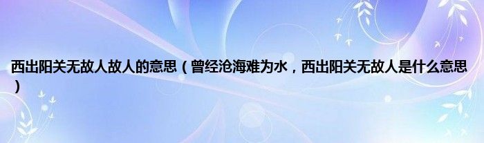 大家好,小常来为大家解答以上问题。西出阳关无故人故人的意思,曾经沧海难为水,西出阳关无故人是什么意思很多人还不知道,现在让我们一起来看看吧!