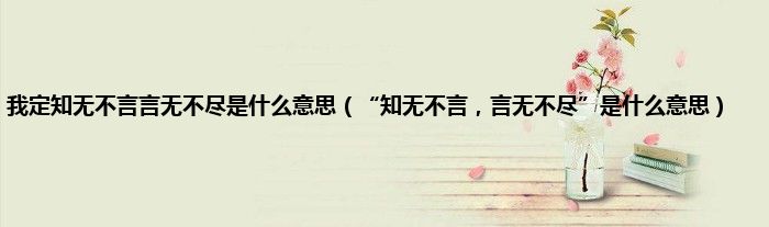 大家好,小常来为大家解答以上问题。我定知无不言言无不尽是什么意思,“知无不言,言无不尽”是什么意思很多人还不知道,现在让我们一起来看看吧!