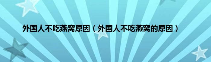 大家好,小科来为大家解答以上问题。外国人不吃燕窝原因,外国人不吃燕窝的原因很多人还不知道,现在让我们一起来看看吧!