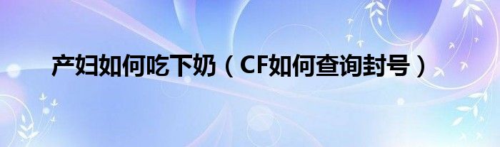 大家好,小常来为大家解答以上问题。产妇如何吃下奶,CF如何查询封号很多人还不知道,现在让我们一起来看看吧!