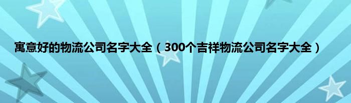 大家好,综合小编来为大家讲解下。寓意好的物流公司名字大全,300个吉祥物流公司名字大全这个很多人还不知道,现在让我们一起来看看吧!