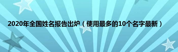 大家好,综合小编来为大家讲解下。2020年全国姓名报告出炉,使用最多的10个名字最新这个很多人还不知道,现在让我们一起来看看吧!