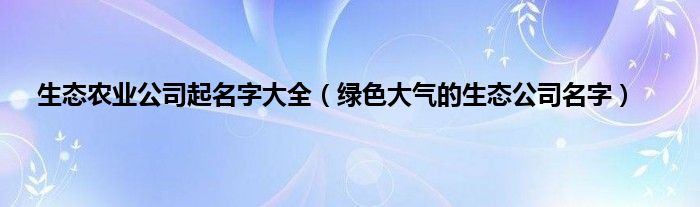 本文生态农业公司起名字大全,绿色大气的生态公司名字到此分享完毕,希望对大家有所帮助。