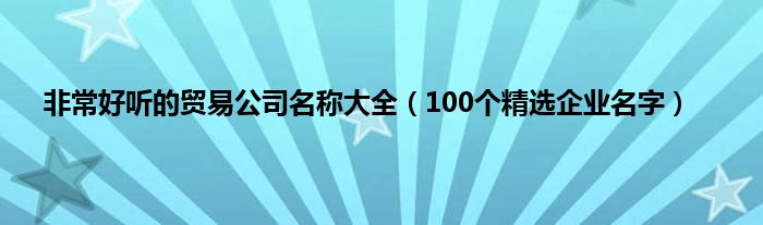 大家好,综合小编来为大家讲解下。非常好听的贸易公司名称大全,100个精选企业名字这个很多人还不知道,现在让我们一起来看看吧!