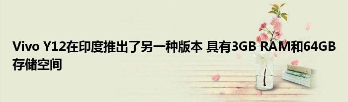 Vivo Y12在印度推出了另一种版本,具有3GB RAM和64GB存储空间。截至目前,该手机仅具有4GB RAM和64GB存储空间。