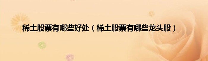 大家好,小常来为大家解答以上问题。稀土股票有哪些好处,稀土股票有哪些龙头股很多人还不知道,现在让我们一起来看看吧!