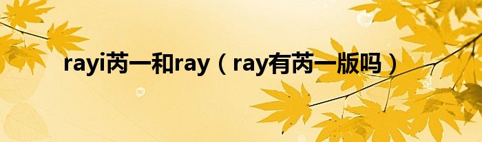 大家好,小科来为大家解答以上问题。rayi芮一和ray,ray有芮一版吗很多人还不知道,现在让我们一起来看看吧!