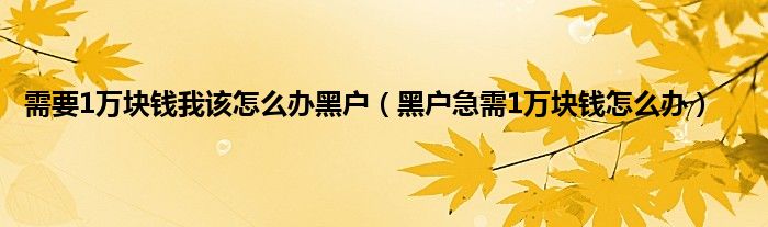 大家好,小常来为大家解答以上问题。需要1万块钱我该怎么办黑户,黑户急需1万块钱怎么办很多人还不知道,现在让我们一起来看看吧!
