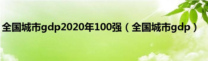大家好,小常来为大家解答以上问题。全国城市gdp2020年100强,全国城市gdp很多人还不知道,现在让我们一起来看看吧!