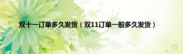 双十一订单多久发货(双11订单一般多久发货)