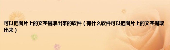 可以把图片上的文字提取出来的软件(有什么软件可以把图片上的文字提取出来)