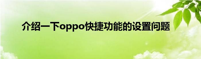 现在大家使用手机的频率越来越频繁,手机也为我们提供了许多的便利,今天小编也来说一下这个介绍一下oppo快捷功能的设置问题相关的文章,这个操作其实不复杂,接下来就给大家介绍一下介绍一下oppo快捷功能的设置问题,一起来看看吧: