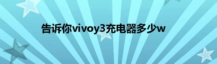 现在大家使用手机的频率越来越频繁,手机也为我们提供了许多的便利,今天小编也来说一下这个告诉你vivoy3充电器多少w相关的文章,这个操作其实不复杂,接下来就给大家介绍一下告诉你vivoy3充电器多少w,一起来看看吧: