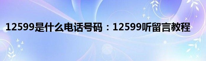 现在大家使用手机的频率越来越频繁,手机也为我们提供了许多的便利,今天小编也来说一下这个12599是什么电话号码:12599听留言教程相关的文章,这个操作其实不复杂,接下来就给大家介绍一下12599是什么电话号码:12599听留言教程,一起来看看吧:
