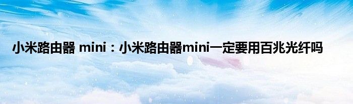 现在大家使用手机的频率越来越频繁,手机也为我们提供了许多的便利,今天小编也来说一下这个小米路由器 mini:小米路由器mini一定要用百兆光纤吗相关的文章,这个操作其实不复杂,接下来就给大家介绍一下小米路由器 mini:小米路由器mini一定要用百兆光纤吗,一起来看看吧: