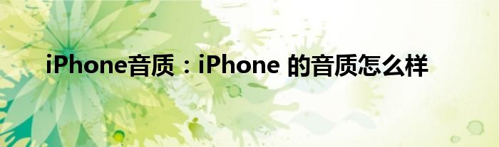 现在大家使用手机的频率越来越频繁,手机也为我们提供了许多的便利,今天小编也来说一下这个iPhone音质:iPhone 的音质怎么样相关的文章,这个操作其实不复杂,接下来就给大家介绍一下iPhone音质:iPhone 的音质怎么样,一起来看看吧: