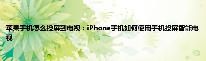 相信通过苹果手机怎么投屏到电视:iPhone手机如何使用手机投屏智能电视这篇文章能帮到你,在和好朋友分享的时候,也欢迎感兴趣小伙伴们一起来探讨。