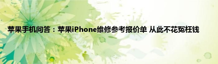 现在大家使用手机的频率越来越频繁,手机也为我们提供了许多的便利,今天小编也来说一下这个苹果手机问答:苹果iPhone维修参考报价单 从此不花冤枉钱相关的文章,这个操作其实不复杂,接下来就给大家介绍一下苹果手机问答:苹果iPhone维修参考报价单 从此不花冤枉钱,一起来看看吧: