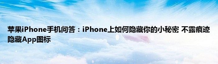 现在大家使用手机的频率越来越频繁,手机也为我们提供了许多的便利,今天小编也来说一下这个苹果iPhone手机问答:iPhone上如何隐藏你的小秘密,不露痕迹隐藏App图标相关的文章,这个操作其实不复杂,接下来就给大家介绍一下苹果iPhone手机问答:iPhone上如何隐藏你的小秘密,不露痕迹隐藏App图标,一起来看看吧: