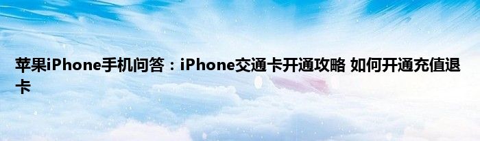 现在大家使用手机的频率越来越频繁,手机也为我们提供了许多的便利,今天小编也来说一下这个苹果iPhone手机问答:iPhone交通卡开通攻略:如何开通、充值、退卡相关的文章,这个操作其实不复杂,接下来就给大家介绍一下苹果iPhone手机问答:iPhone交通卡开通攻略:如何开通、充值、退卡,一起来看看吧: