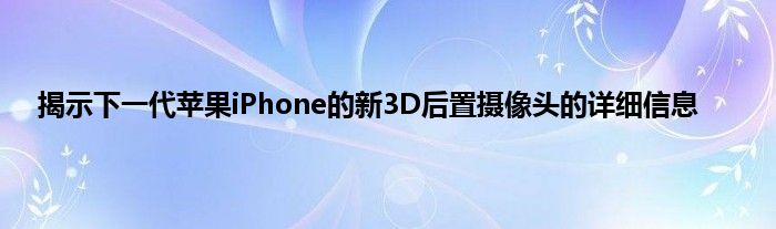 预计苹果将在下一代iPhone的后部引入3D深度相机。