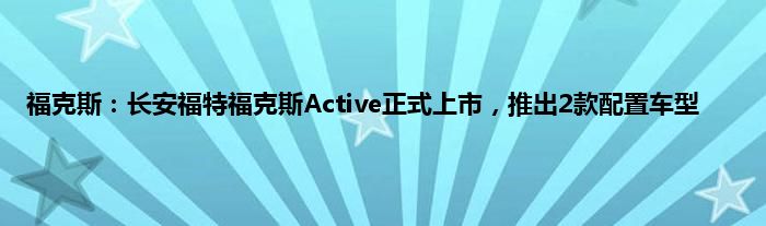 8月16日,长安福特福克斯Active正式上市,共推出2款配置车型,售价分别为13.98万元、15.38万元。