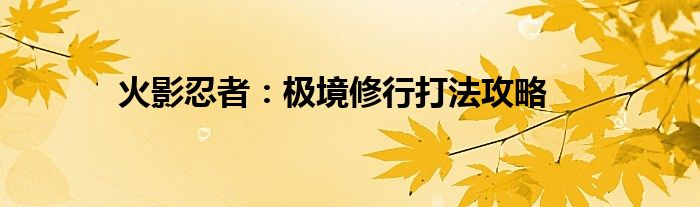 小编今天给各位玩家朋友们带来的是火影忍者:极境修行打法攻略,有记得的玩家朋友吗?不记得也没有关系,小编已经帮助大家把火影忍者:极境修行打法攻略找了出来,你只需要动动你的小手就可以轻松知道啦,快来瞧一瞧吧。