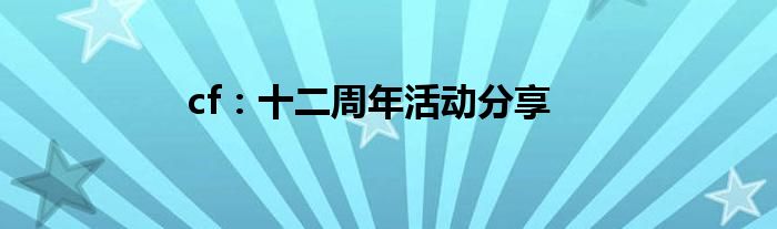 小编今天给各位玩家朋友们带来的是cf:十二周年活动分享,有记得的玩家朋友吗?不记得也没有关系,小编已经帮助大家把cf:十二周年活动分享找了出来,你只需要动动你的小手就可以轻松知道啦,快来瞧一瞧吧。