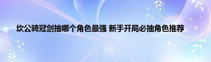 《坎公骑冠剑》开局必抽角色推举